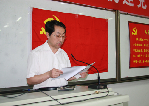 闫祖书书记在讲话中代表学院党委向受到表彰的先进党支部和先进个人表示热烈的祝贺,并向全院辛勤工作在教学、科研、管理、服务等各条战线上的全体党员,向曾经为学院建设和发展做出贡献的离退休老党员,向勤奋学习、健康成长的青年学生党员致以诚挚的问候和崇高的敬意。在带领大家回顾了中国共产党90年的奋斗历程后,闫书记还对学院近三年在党建、教学、科研及学生工作等方面取得的成绩予以全面的总结。他希望受表彰的支部和个人珍惜荣誉,在学院改革和建设的工作中要争当排头兵、先锋队,发挥表率作用。也希望全院党员师生向受到表彰的集体和个人学习,坚定信念,牢记宗旨,求真务实,开拓创新,把创先争优活动不断推向高潮,引导和带动广大教职工为学院的发展作出更大的贡献,为把我院建设成产学研紧密结合的研究型学院而努力奋斗。