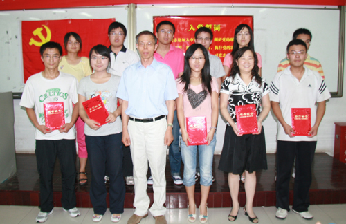 最后,全体与会人员,在预备党员呼天明教授的带领下,预备党员面对党旗庄严宣誓,正式党员重温入党誓词。大会在《国际歌》中圆满结束。