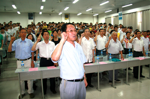 6月28日下午,随着雄壮的国歌声,“6165cc金沙总站检测中心庆祝建党九十周年大会”在北校区8T01教室隆重召开。院党委委员、全体预备党员、正式党员代表以及入党积极分子代表200多人参加了会议。会议由院党委副书记、副院长王晓娟同志主持。