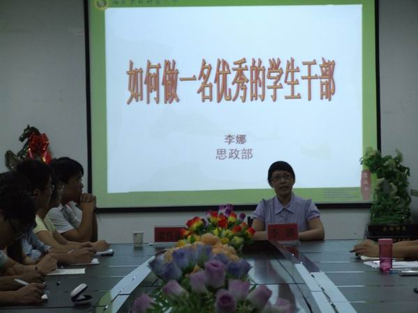 为了提高学生干部的个人修养、工作能力和服务意识,把学生干部培养成政治立场坚定、工作能力突出、有责任心、有创新意识的优秀学生骨干,更好地发挥学生干部的战斗堡垒作用,6月20日晚,在四号楼一层会议室,6165cc金沙总站检测中心举办学生干部培训会。思政部李娜老师、6165cc金沙总站检测中心全体专兼职辅导员、学生会全体学生干部参加了报告会。