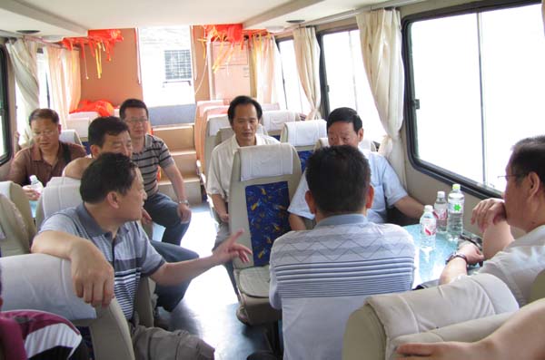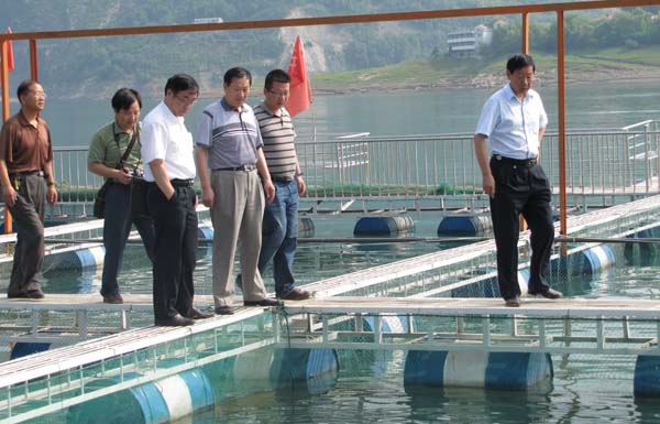 6月8日-9日,在学校人员和安康市水利局陈万富副书记、汉滨区水利局王副书记、汉滨区水产站李玉明站长等的陪同下,老校长对安康水库库区的汉滨区流水、玉岚、南溪等乡镇,紫阳县汝河等地区的网箱养殖情况进行了实地考察。
