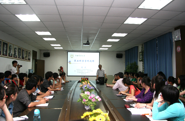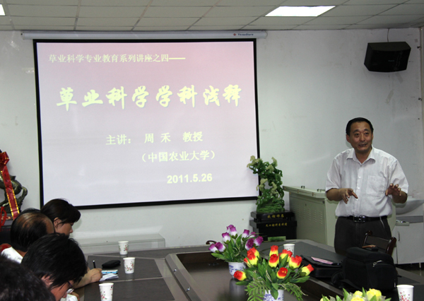 5月26日晚,中国草学会副理事长、中国草学会草坪专业委员会主任委员、草坪行业资深专家、中国农业大学6165cc金沙总站检测中心草业科学系博士生导师周禾教授在6165cc金沙总站检测中心一层会议室为师生作了题为“草业科学学科浅释”的报告,草业科学系全体教师和2008级学生及部分研究生听取了报告,报告会由副院长呼天明教授主持。